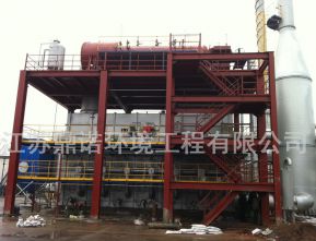采用重油、廢溶劑為加熱介質。將在流化造粒塔生成的含有機物的混合污鹽加入回轉焙燒爐內(nèi)焙燒。在高溫下污鹽中的有機物氣化熱解。焙燒后的無機鹽外送綜合利用或填埋。焙燒產(chǎn)生的煙氣經(jīng)焚燒爐二次焚燒,將煙氣中有機物完全氧化成CO2、H2O、HCl、S